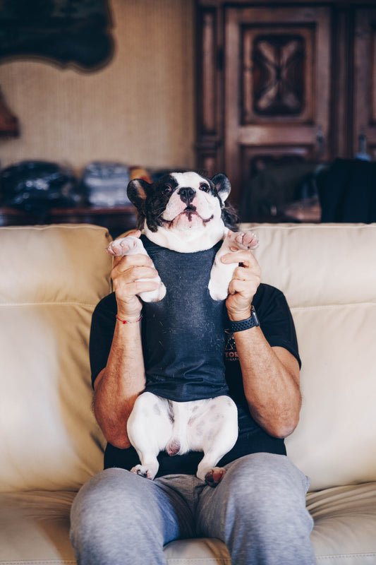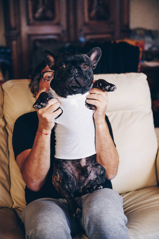 L'oggetto è un normale scalda collo. Praticando due fori sul lato opposto del logo, in base alla dimensione del cane, si ottiene uno "scaldabullo". Il tessuto non sfilaccia ed è molto resistente.