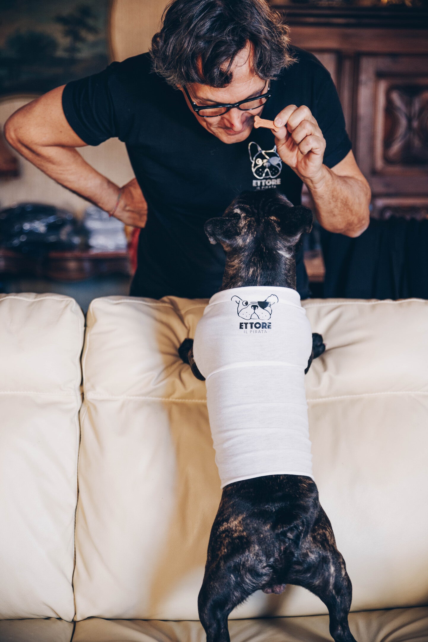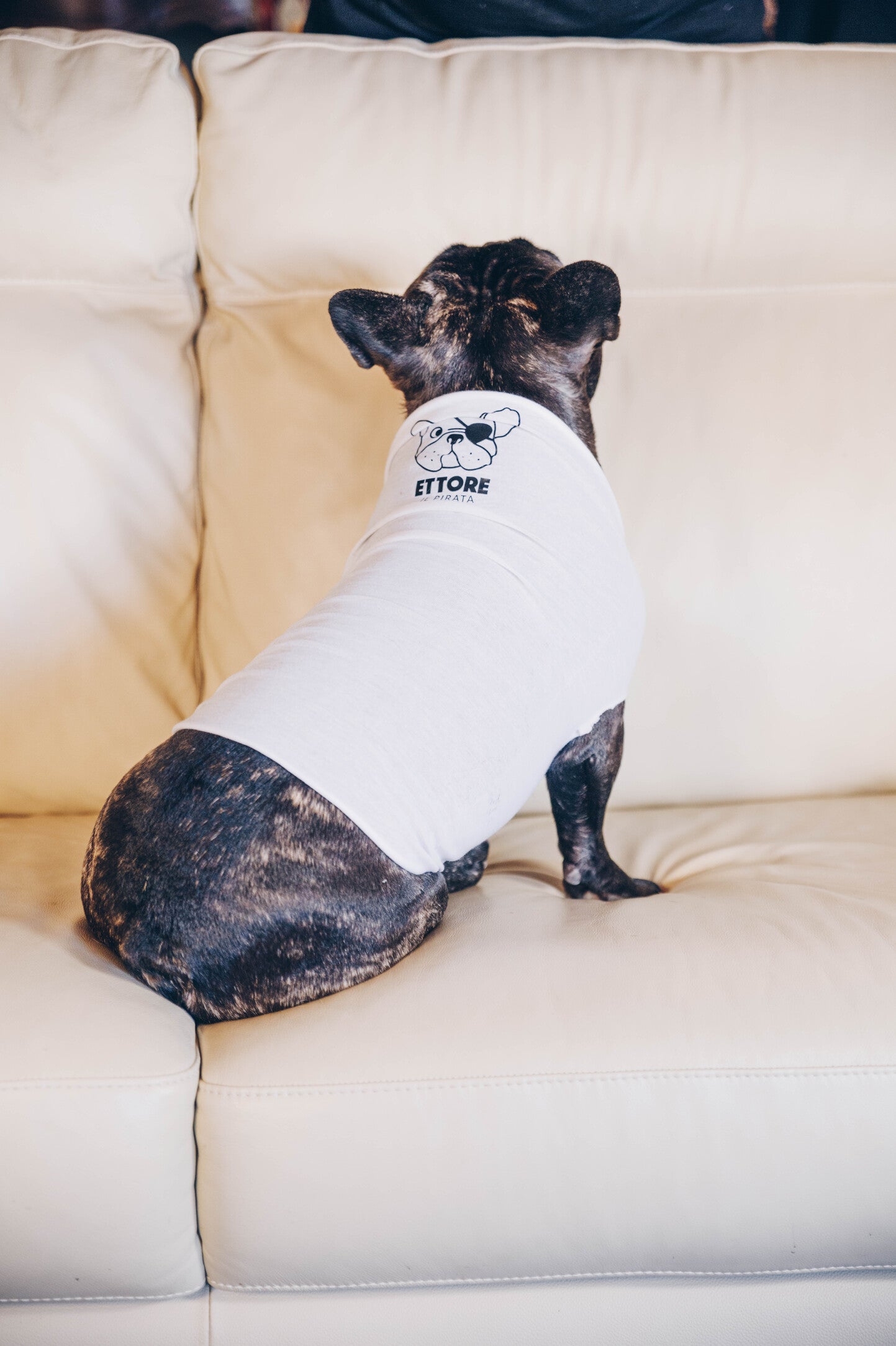 L'oggetto è un normale scalda collo. Praticando due fori sul lato opposto del logo, in base alla dimensione del cane, si ottiene uno "scaldabullo". Il tessuto non sfilaccia ed è molto resistente.